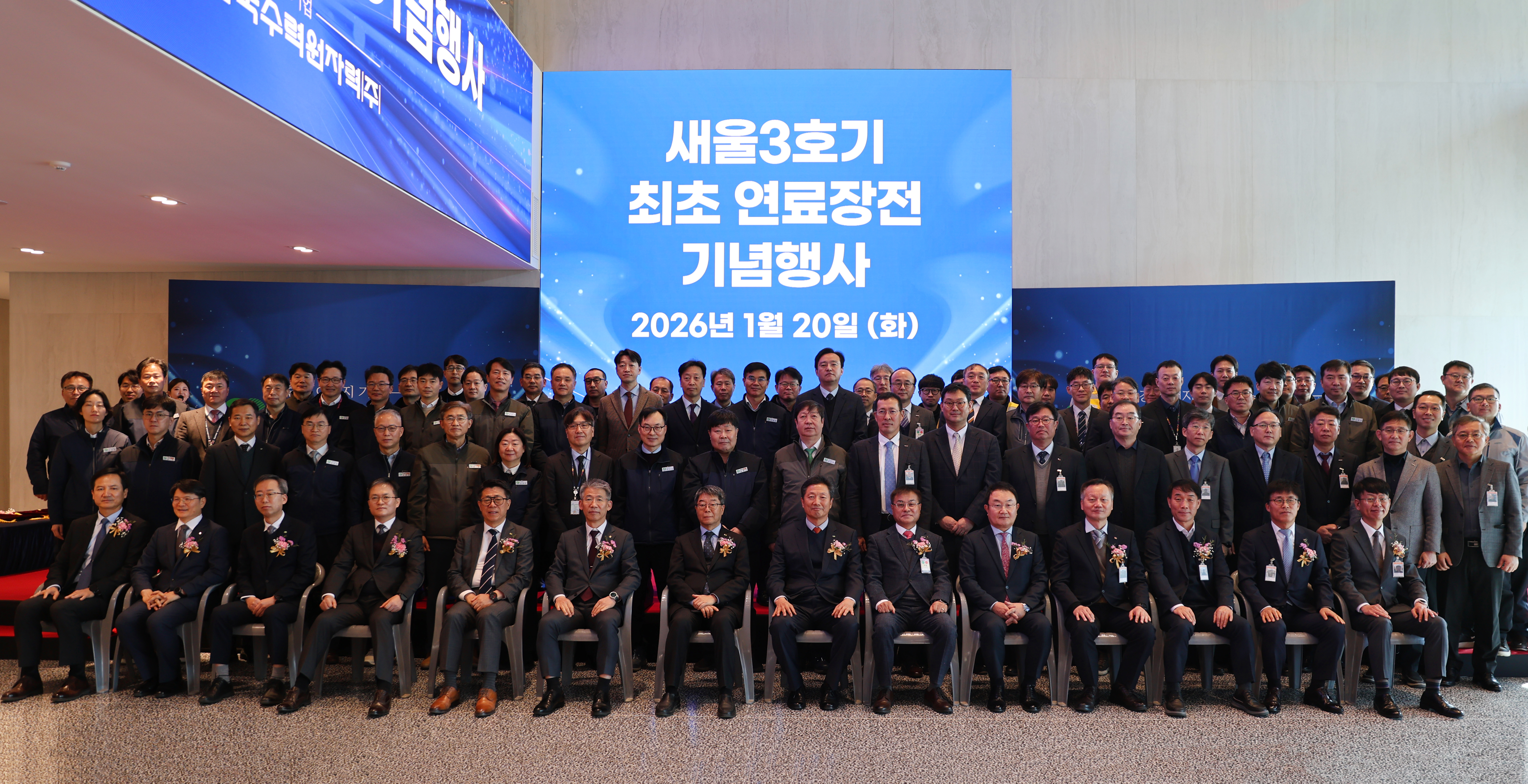 "우리 회사, 새울3호기 최초 연료장전 기념행사 참석" 상세보기 우리 회사, 새울3호기 최초 연료장전 기념행사 참석 작성자 KNF 게시일 2026-01-22 조회수 180 20일 우리 회사는 새울 3호기 최초 연료장전 기념행사에 참석했다. 이날 행사에는 우리 회사 최재돈 기술본부장이 참석해 원활한 연료장전 수행을 위한 협력 의지를 밝혔다. 사진은 새울 3호기 최초 연료장전 기념행사 단체사진.