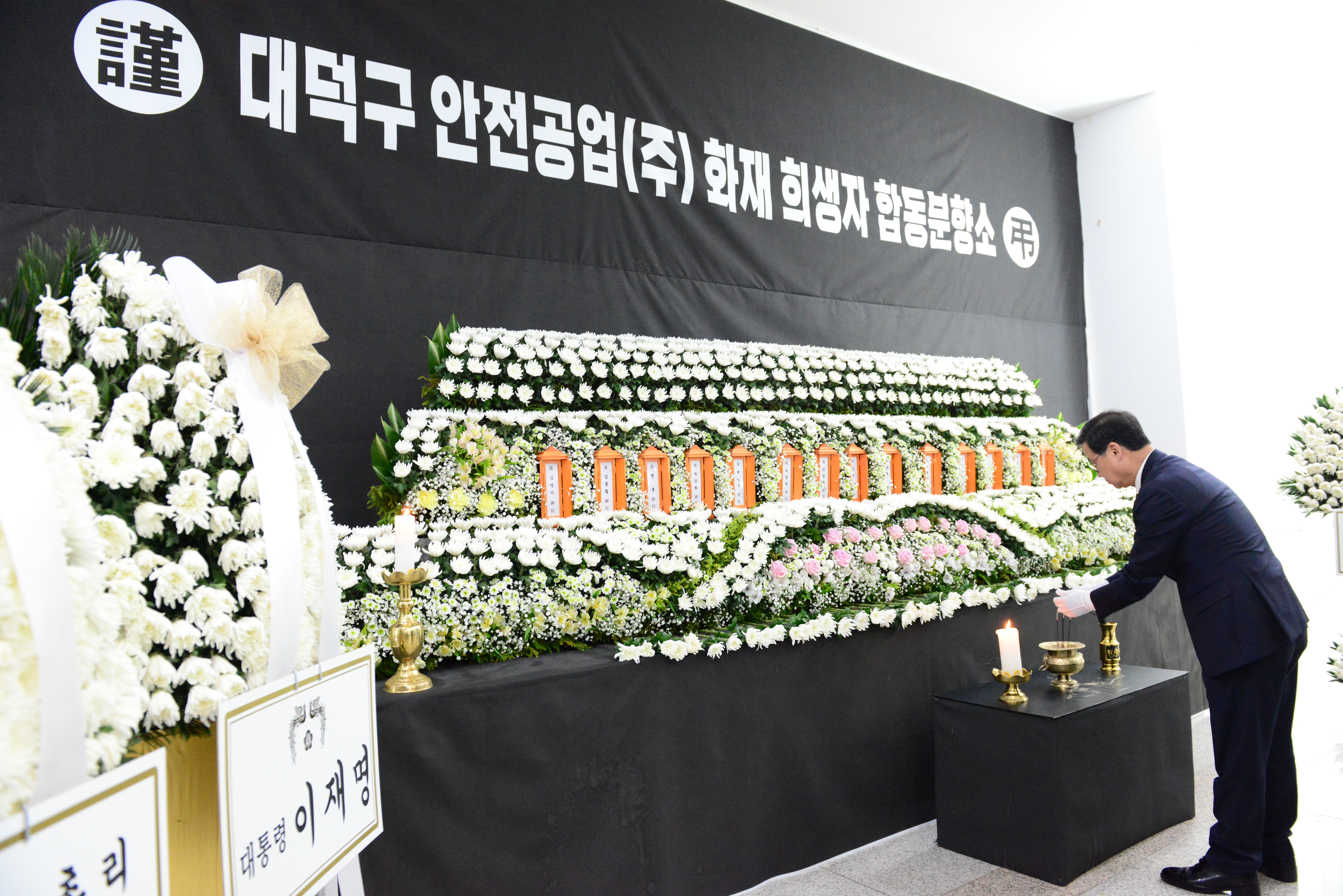 "우리 회사, 대덕구 안전공업(주) 화재 희생자 합동분향소 찾아 추모" 상세보기 우리 회사, 대덕구 안전공업(주) 화재 희생자 합동분향소 찾아 추모 작성자 KNF 게시일 2026-03-25 조회수 32 우리 회사는 3월 25일, 대덕구 안전공업(주) 화재 희생자 합동분향소가 마련된 대전광역시청을 찾아 추모를 드렸습니다. 사진은 합동분향소를 찾아 추모를 드리는 모습.