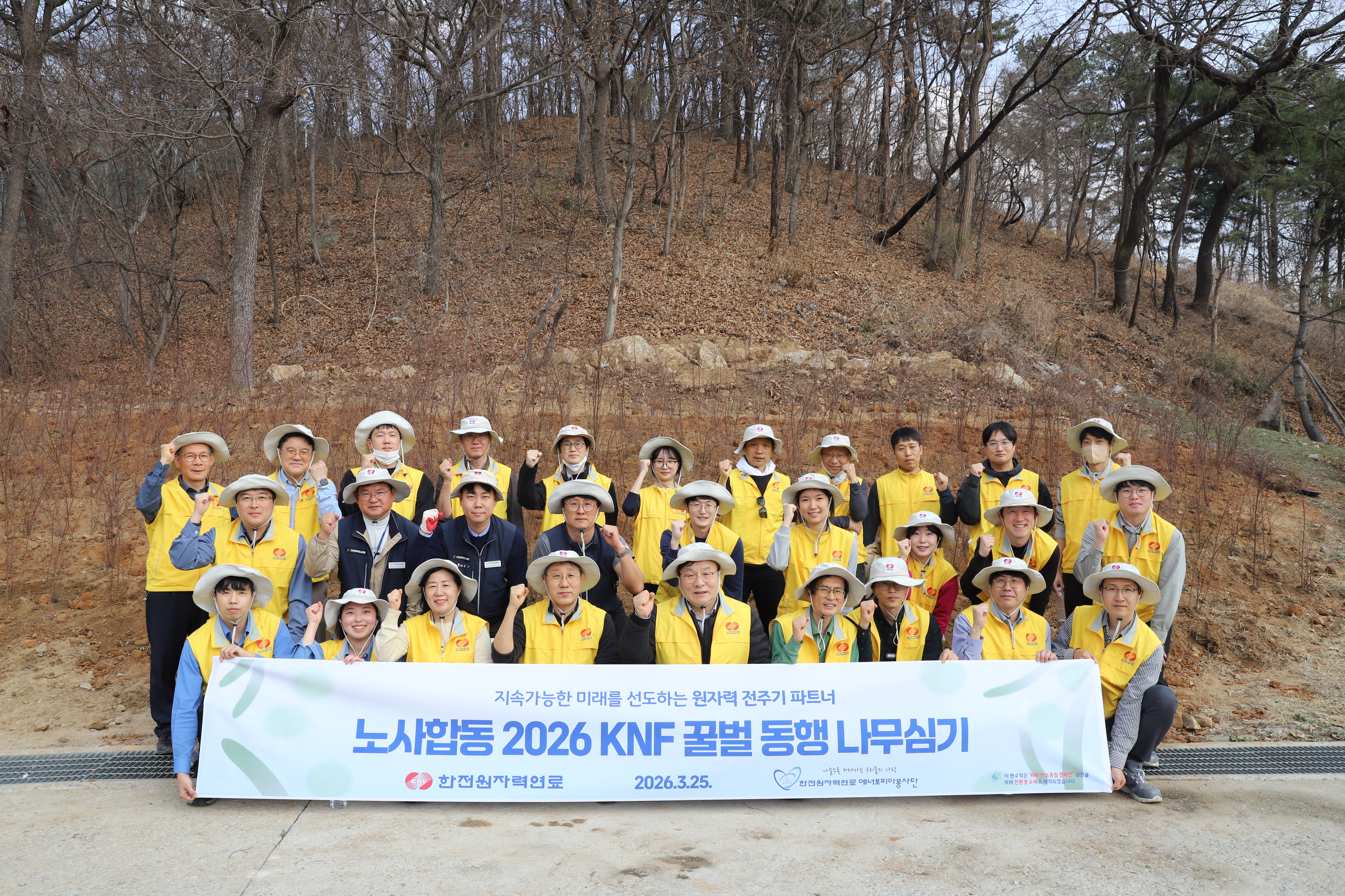 - 임직원 참여형 ESG 실천 행사 열어 생물 다양성 보전 및 탄소흡수원 확대 기여 ▣ 한전원자력연료(사장 정창진)는 대전 본사 일원에서 노사합동으로 「2026 KNF 꿀벌 동행 나무심기 행사」를 실시했다고 25일 밝혔다.