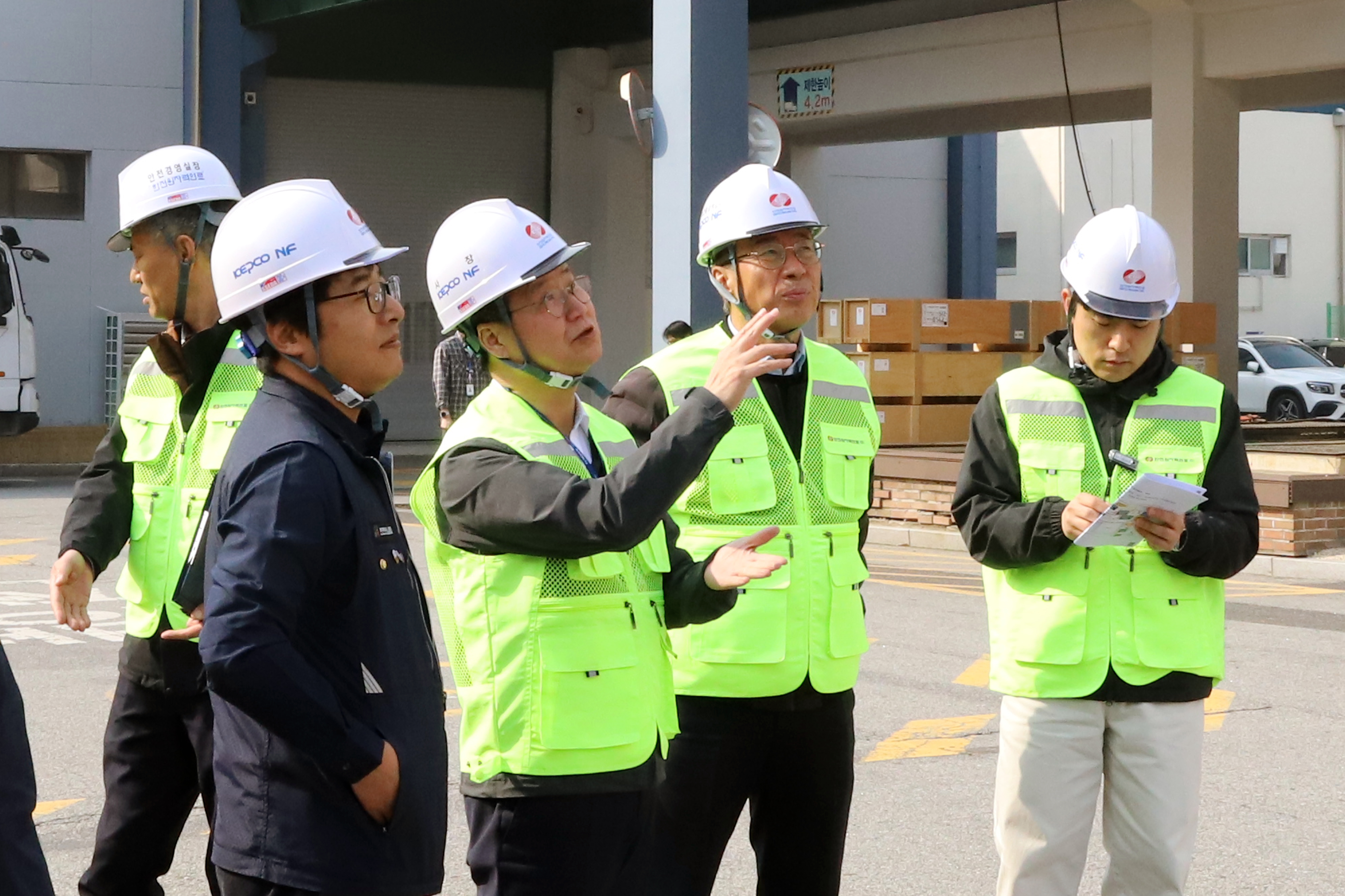 [사진자료] 한전원자력연료 정창진 사장과 노동조합 관계자들이 화재 예방 시설을 점검하고 있다. |
